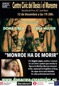 MONROE HA DE MORIR d’Àngels López. Divendres 12 de desembre, 19.30h. Centre Cívic d’el Besòs i el Maresme (Rambla de Prim, 87, Sant Martí)